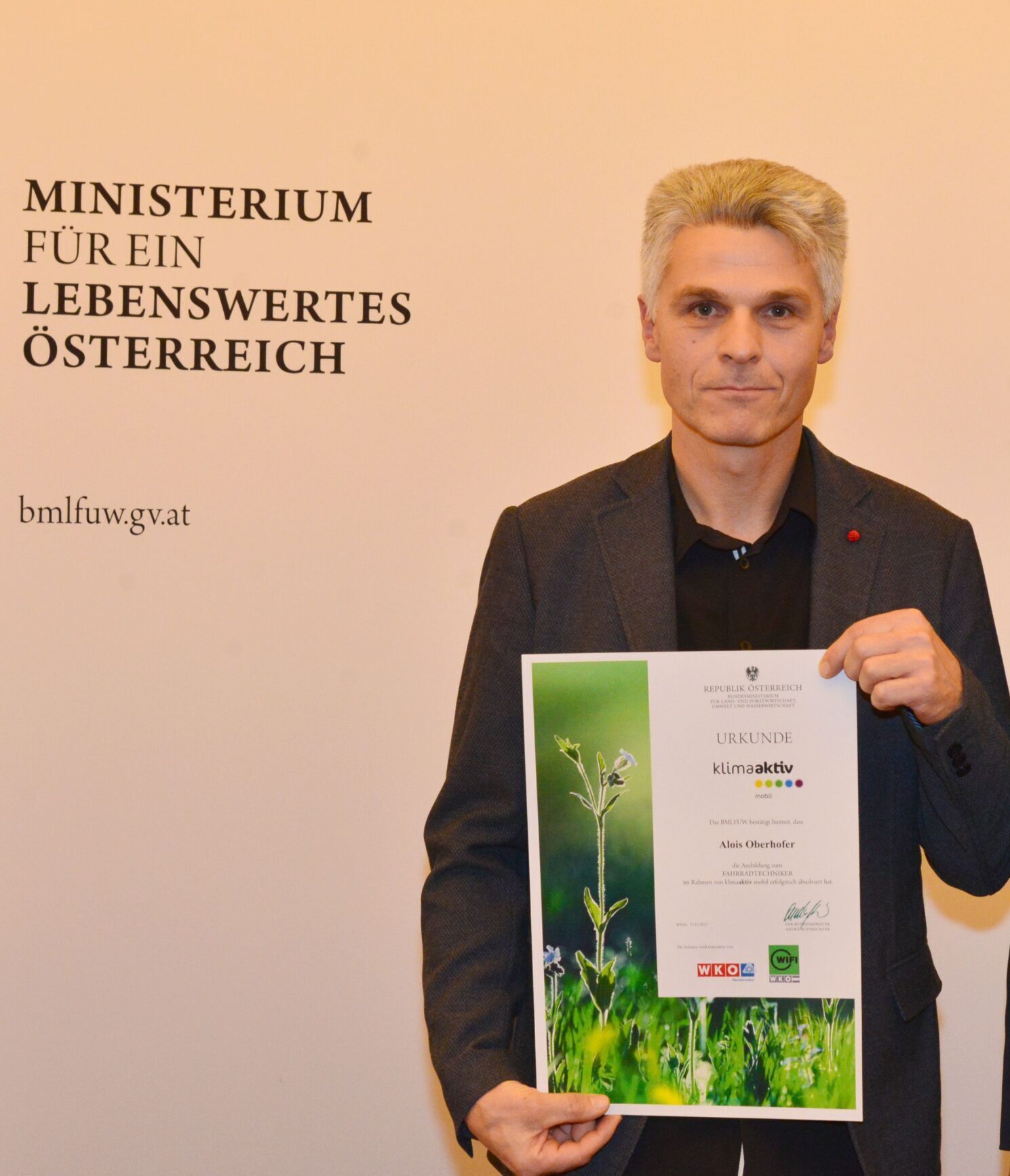 Durch die Spezialisierung im Bereich von E-Bikes wurde BIKE Repair Oberhofer bereits im Herbst 2O17 vom Bundesministerium für Umwelt mit dem „klimaaktiv“-Preis ausgezeichnet. Diese Auszeichnung weist BIKE Repair Oberhofer als einen von 86 neuen klimaaktiv Kompetenzpartner für nachhaltige Mobilitätslösungen aus.